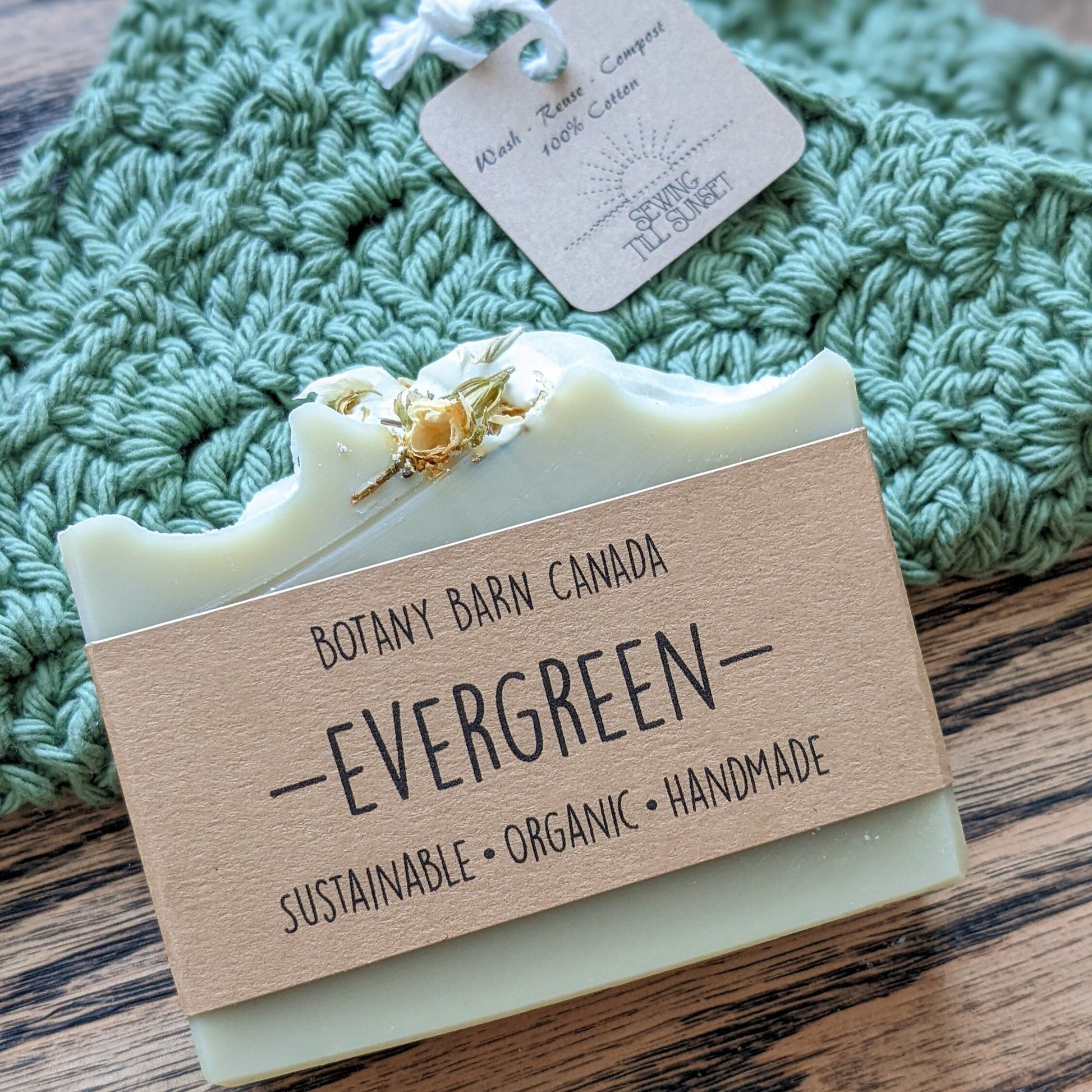 Coffret cadeau écologique avec savon biologique fait à la main, barre de lotion et gant de toilette vert