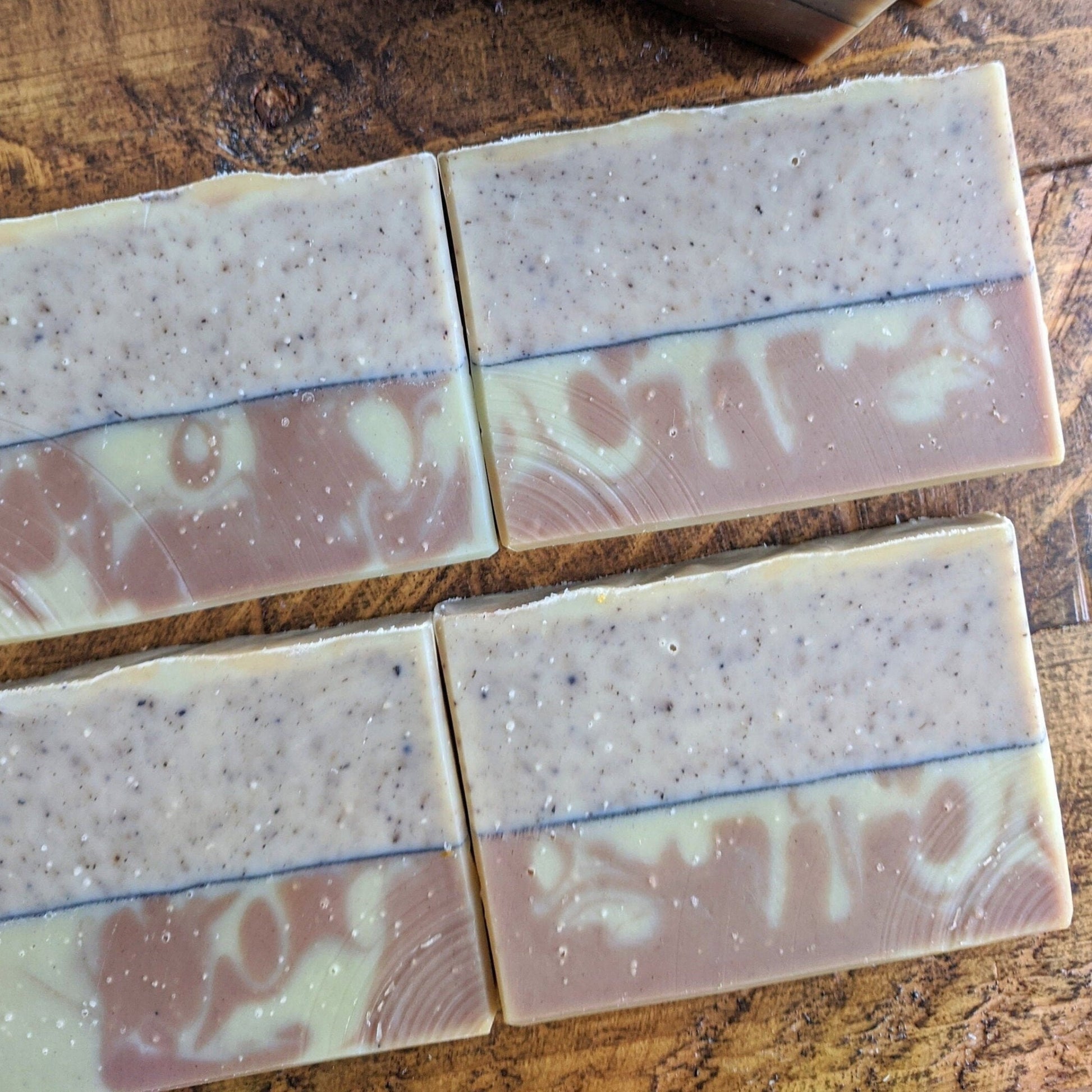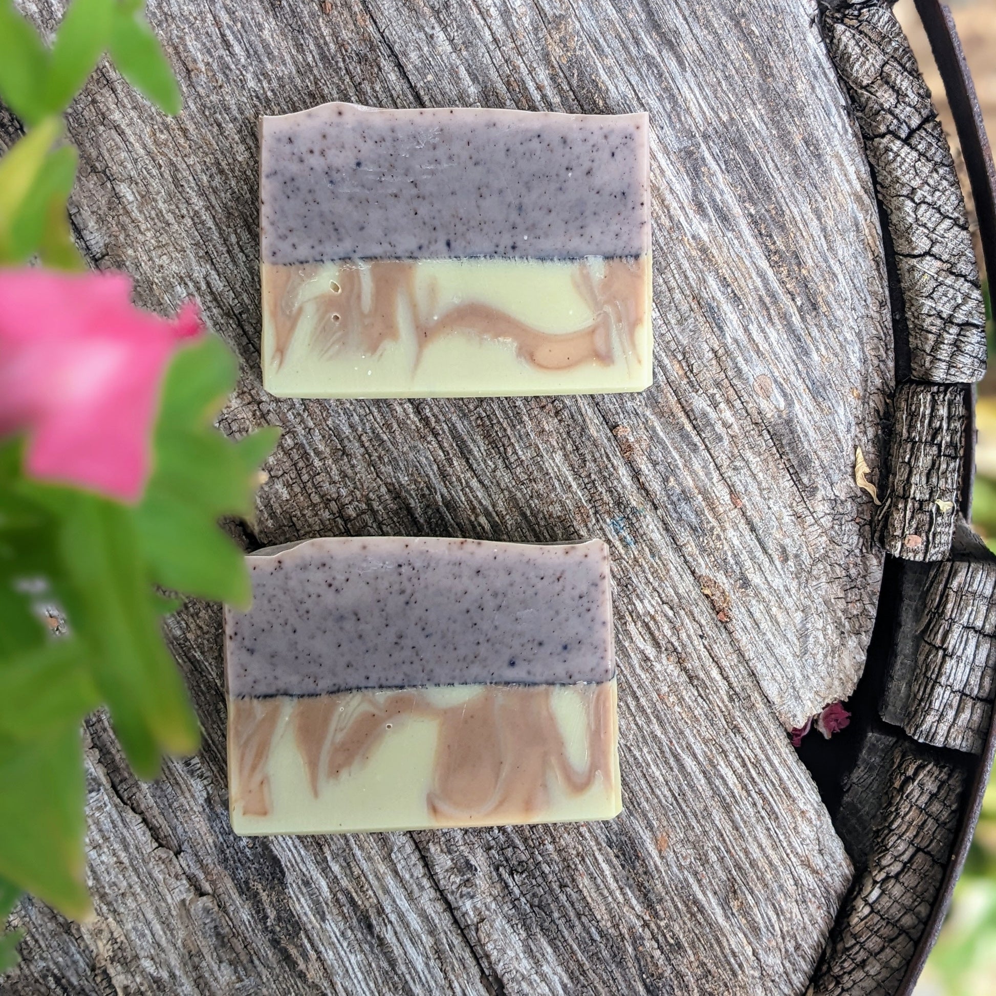 Ingredients: Saponified olive oil*, coconut oil*, hemp oil*, sunflower oil*, shea butter*, lavender & patchouli essential oil*, sea clay, cocoa powder*, alkanet root powder, purple Brazilian clay, activated charcoal*