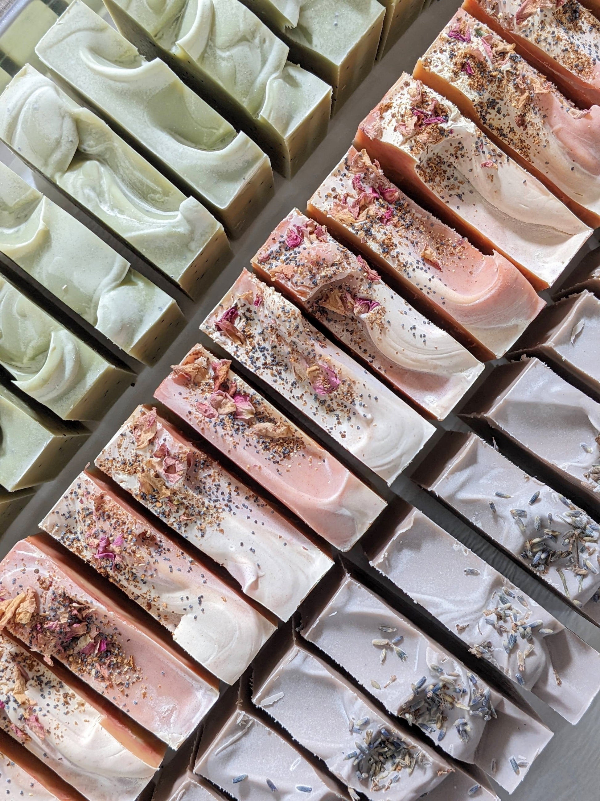 All of my soaps are handmade using the cold process method of soapmaking with all natural organic oils, scents, and colourants. My products are always 100% palm oil free and I use as little packaging as possible. Your soaps will arrive in a kraft gift box.