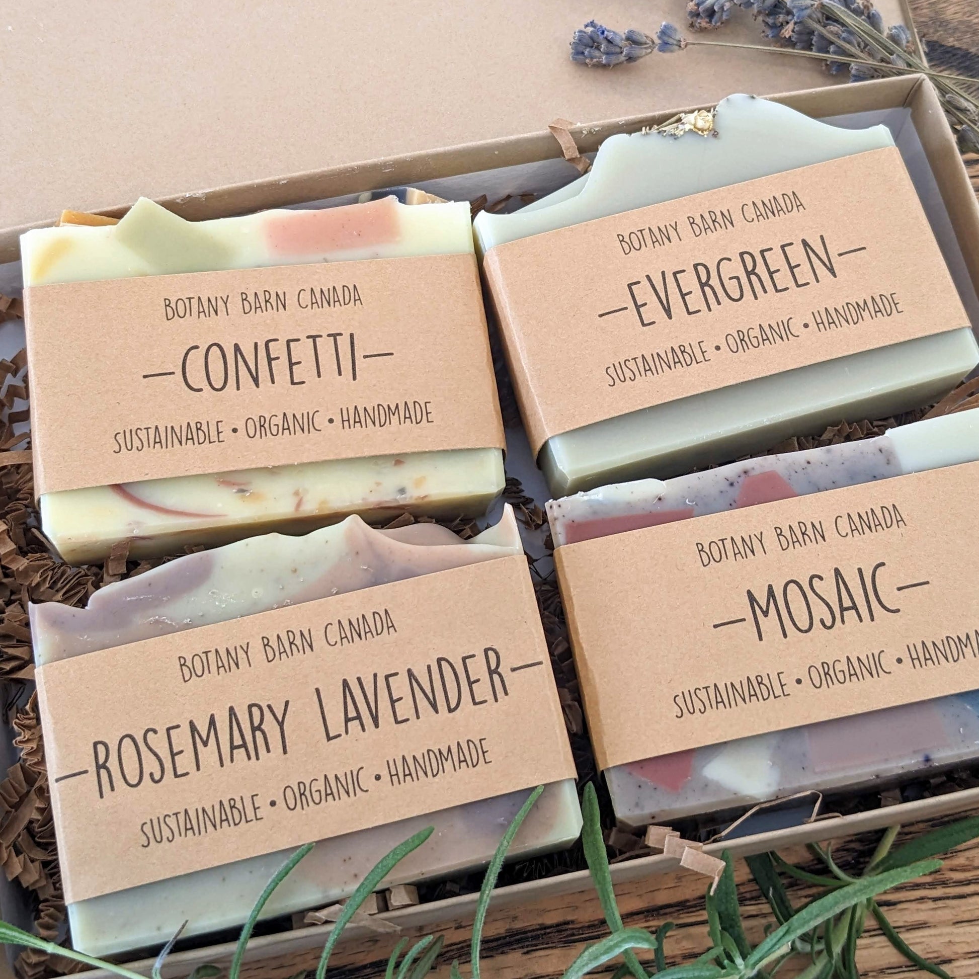 Pick four of your favourite Botany Barn Canada soaps and build a custom gift box for yourself or someone special! Select one of my scent combos suggested below or build a custom pack. To build your own combo pack, add the item to your cart, then when you check out simply leave the names of the soaps you want in the comment box.