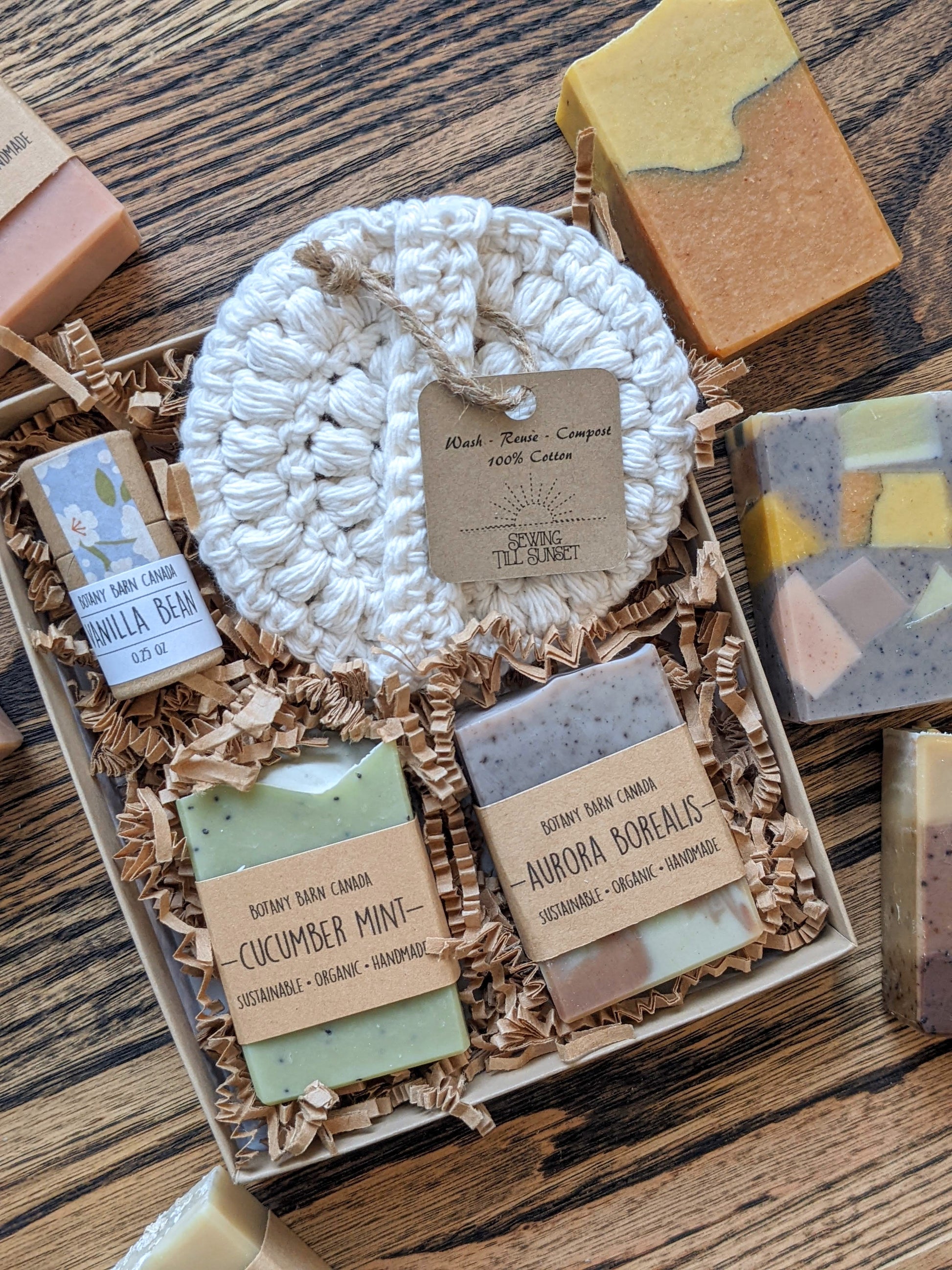 Facial Gift Set | Two Mini Soaps, Eco Friendly Lip Balm & Crocheted Scrubby
