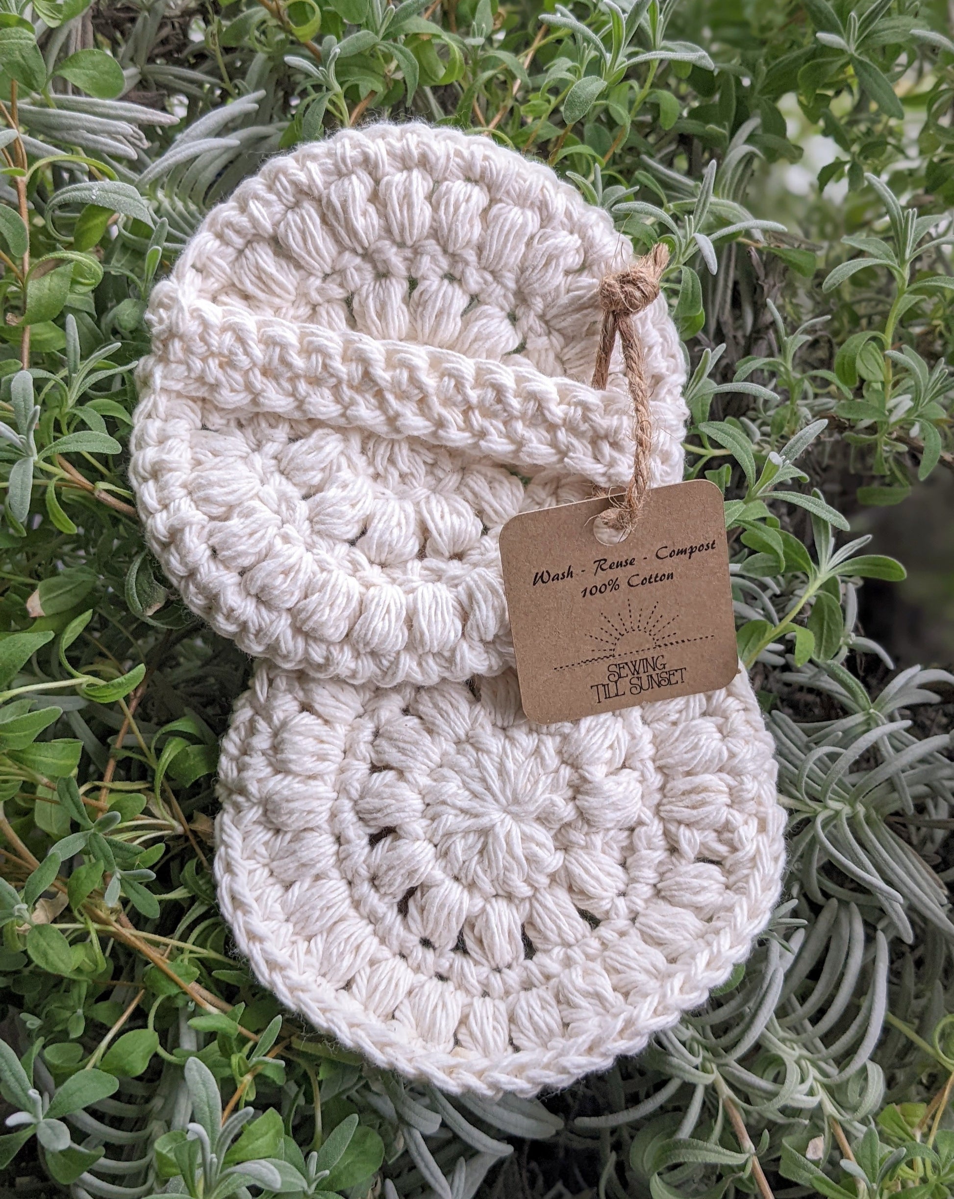 Nicole's face scrubbies are made out of 100% cotton yarn and measure approximately 3.5 inches in diameter. Slip your hand through the strap to easily hold the scrubby while you use it. Hand crocheted to include textured bumps that are soft & exfoliating on the face and body. This round scrubby leaves your skin feeling soft and cleansed. Pair with your favourite Botany Barn Canada soaps for a rich lather. Machine wash with cold water and tumble dry on low or lay flat to dry. Do not bleach or iron.