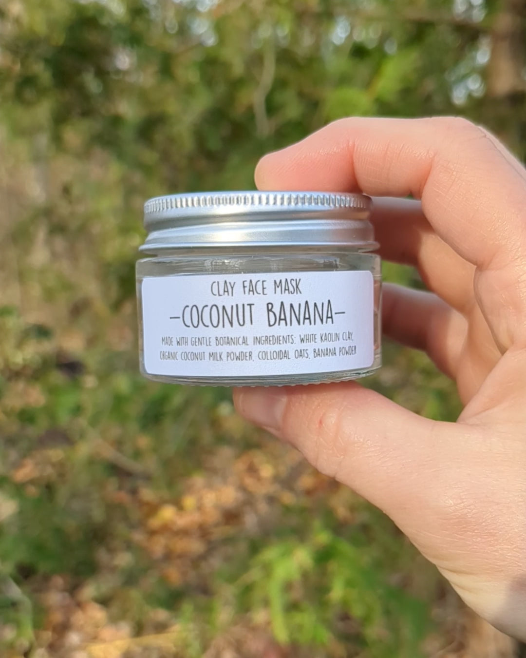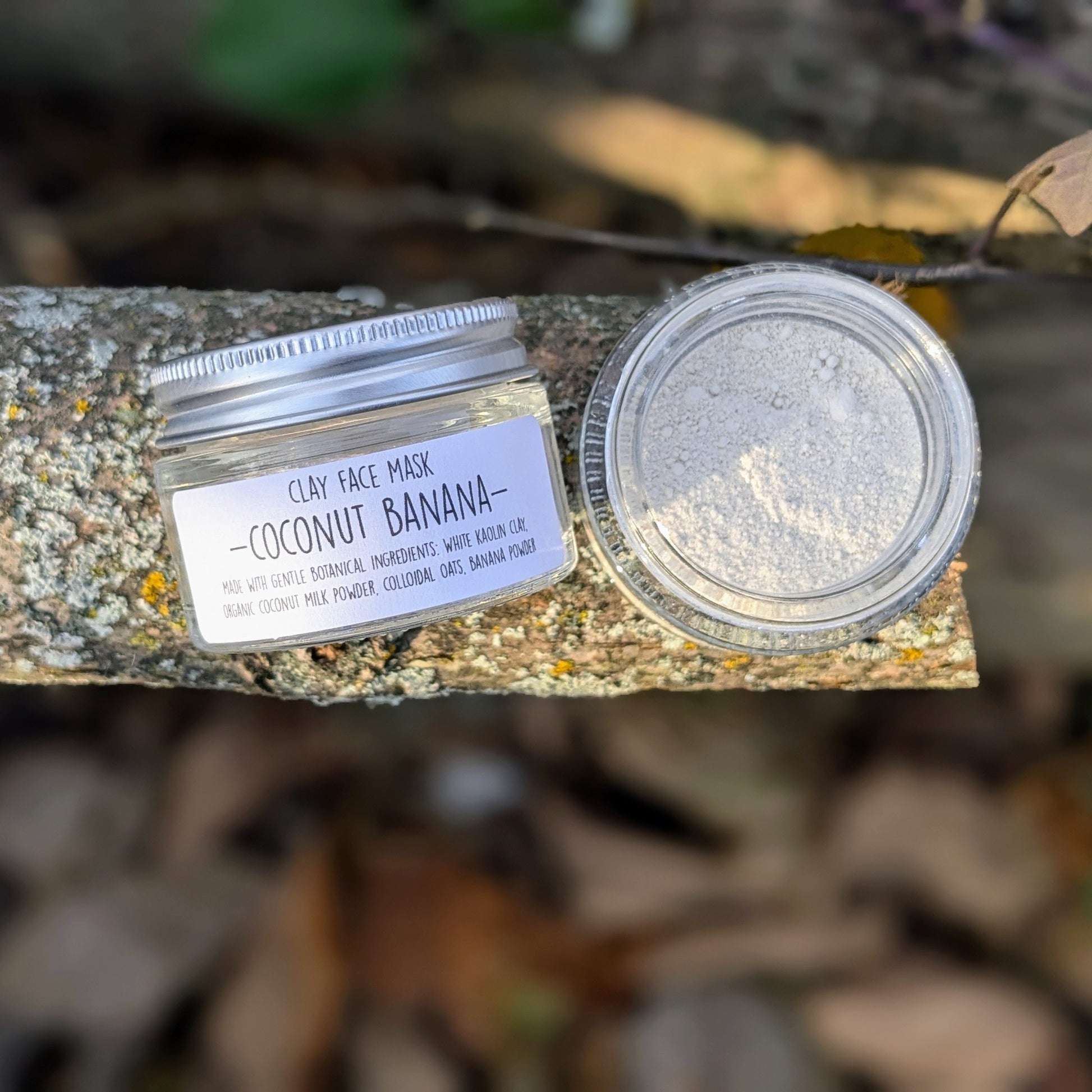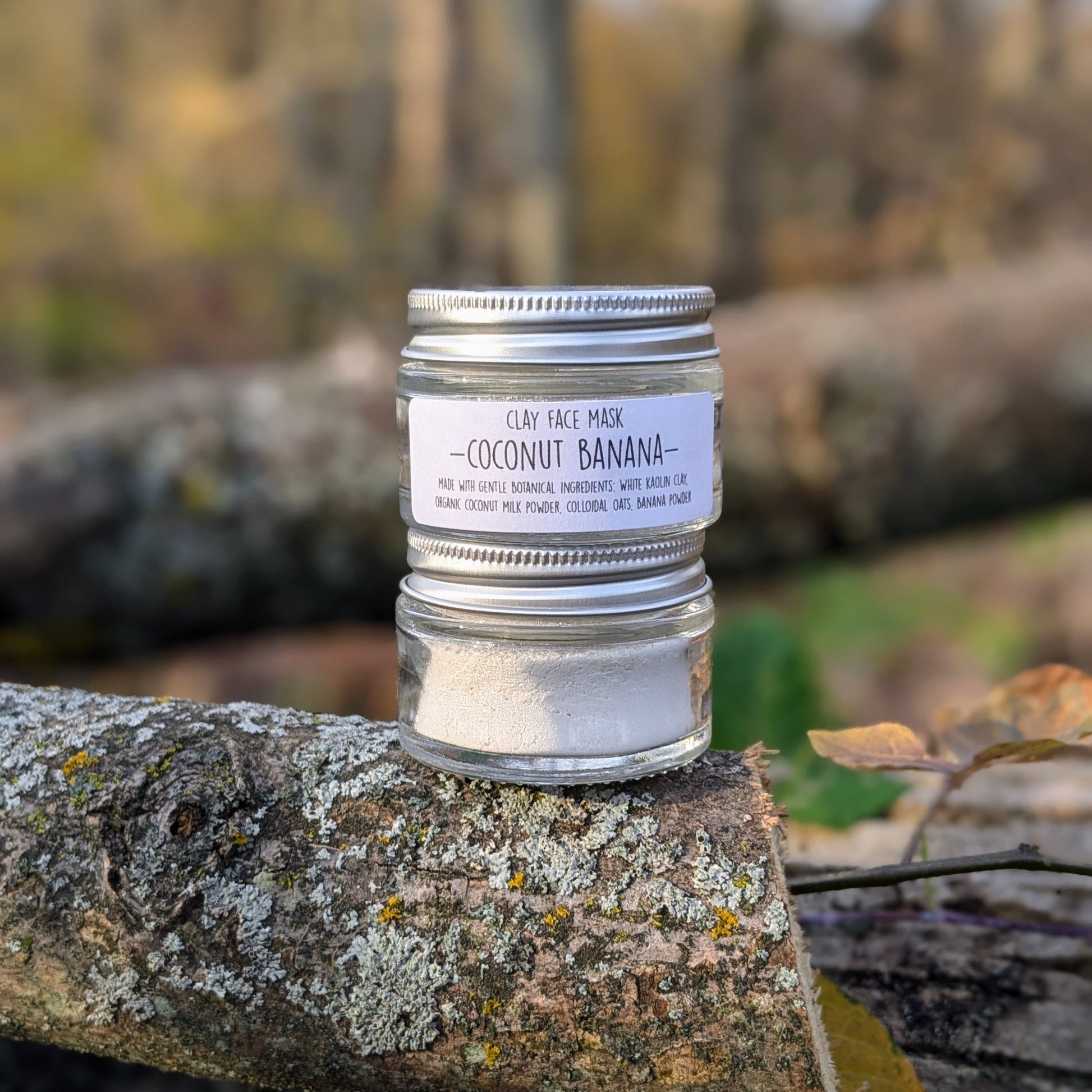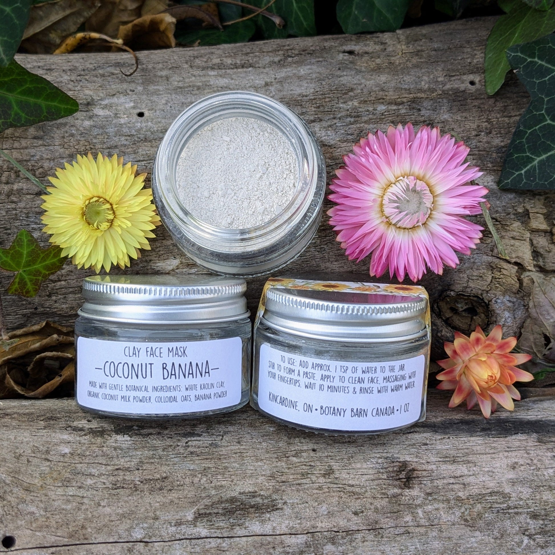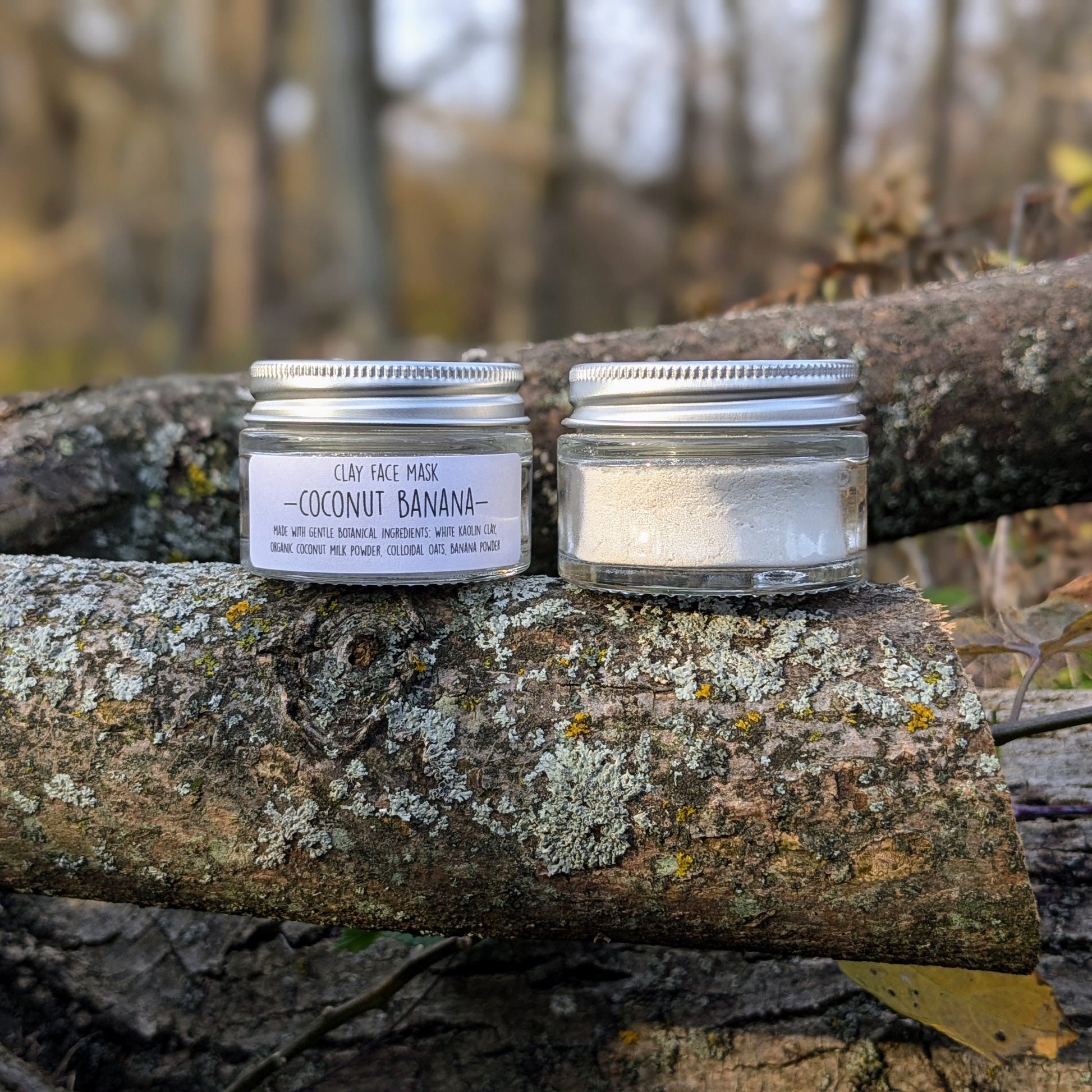 This listing is for one mini Coconut Banana Clay Face Mask, packaged in a 1oz clear glass jar (one application).