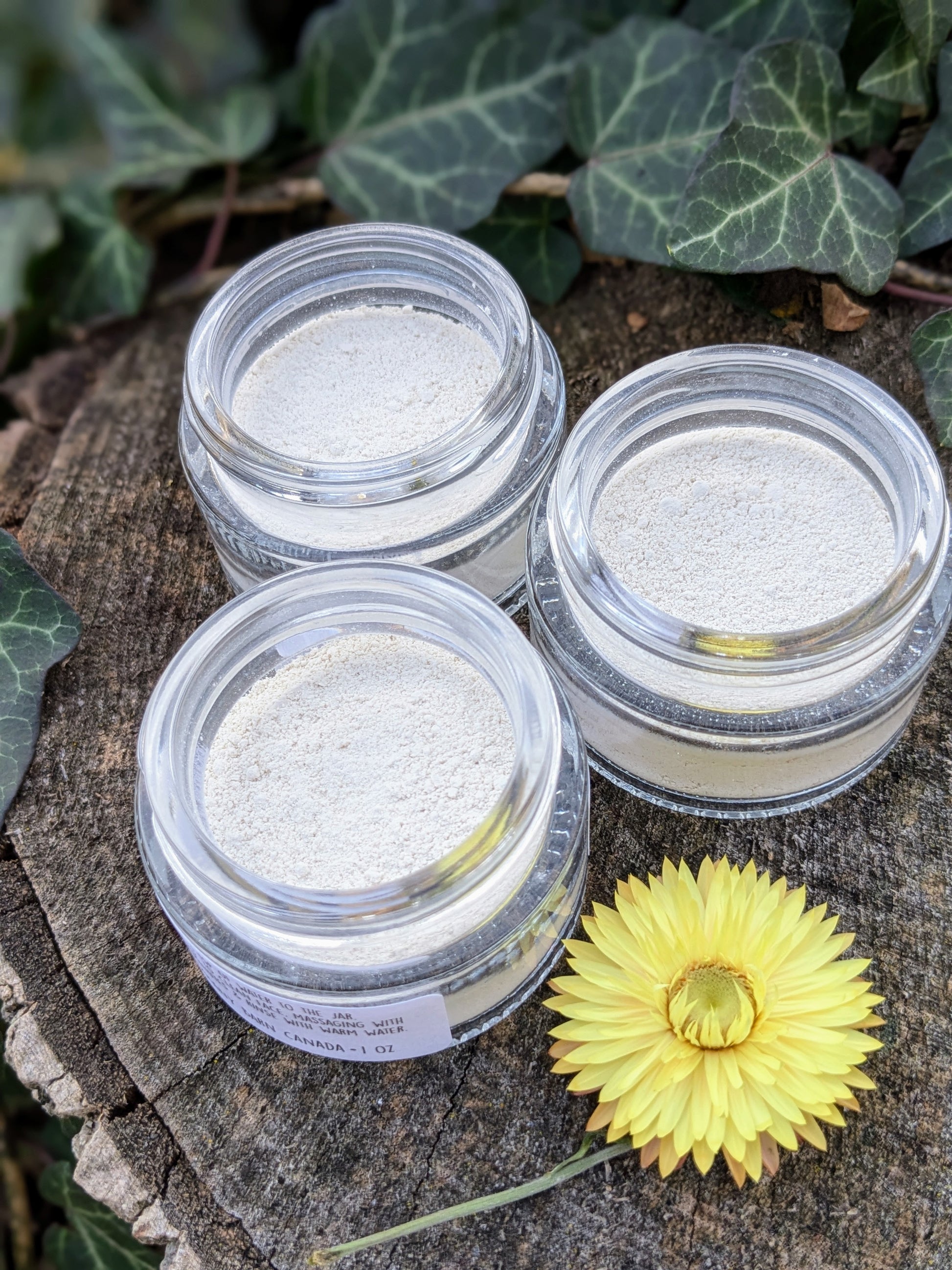Our clay facial masks are handcrafted with natural botanical ingredients that are gentle enough for sensitive skin. This mask was specially formulated to help soothe, hydrate and moisturize dry winter skin. The jar you will receive contains dry ingredients to which you can add water to form a paste.