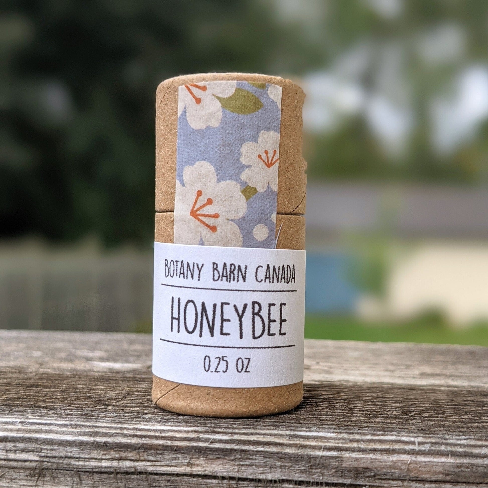 HONEYBEE (made with local honey!) Ingredients: local beeswax, cocoa butter*, sweet almond oil*, coconut oil*, castor oil*, lemongrass essential oil*, local honey