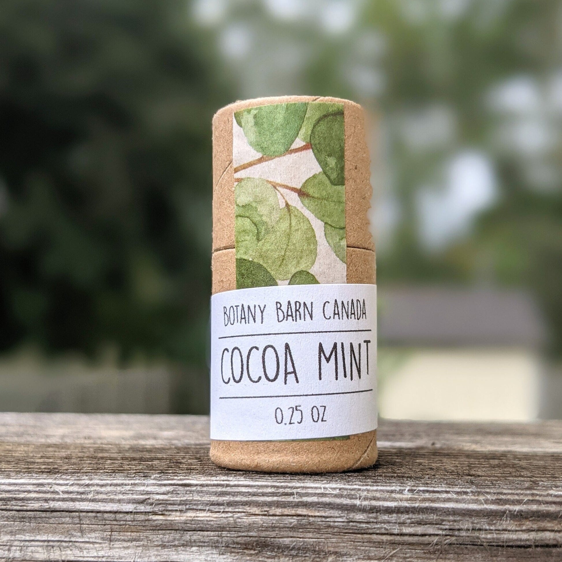 COCOA MINT Ingredients: local beeswax, cocoa butter*, sweet almond oil*, coconut oil*, castor oil*, jojoba oil*, peppermint essential oil*, cocoa powder*